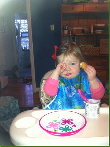 Which of course means that she wants to eat with a spoon all the time, and it’s very tiring.